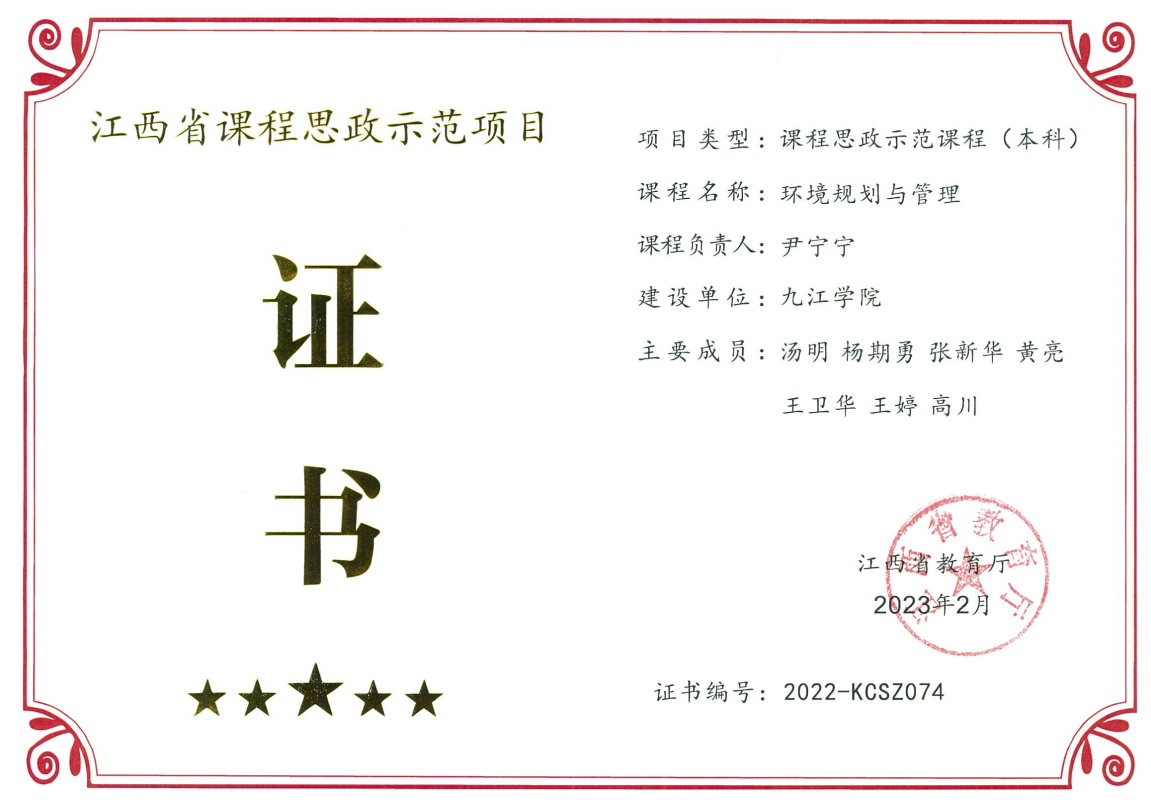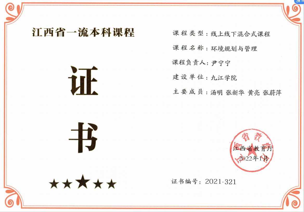 学院围绕“建设区域性高水平大学”学校办学目标,加强内涵建设,加快推进学科交叉融合,聚焦大江大湖产业生态化与环境健康领域,全力推进资源与环境学科点建设工作,创新工作举措,优化资源整合,高质量召开学科建设研讨会,全面优化提升建设指标。资源与环境学科新增为校优势学科,环境工程专业获批江西省一流本科专业,环境生态工程专业获校应用型转型试点专业,资源环境科学专业全面向“双碳”和生态环境大数据方向转型,《环境规划与管理》获批省一流课程、省一流课程思政示范课、江西省线上线下混合式一流课程,特色本土课程《鄱阳湖与生态文明》教材正式获批立项建设。