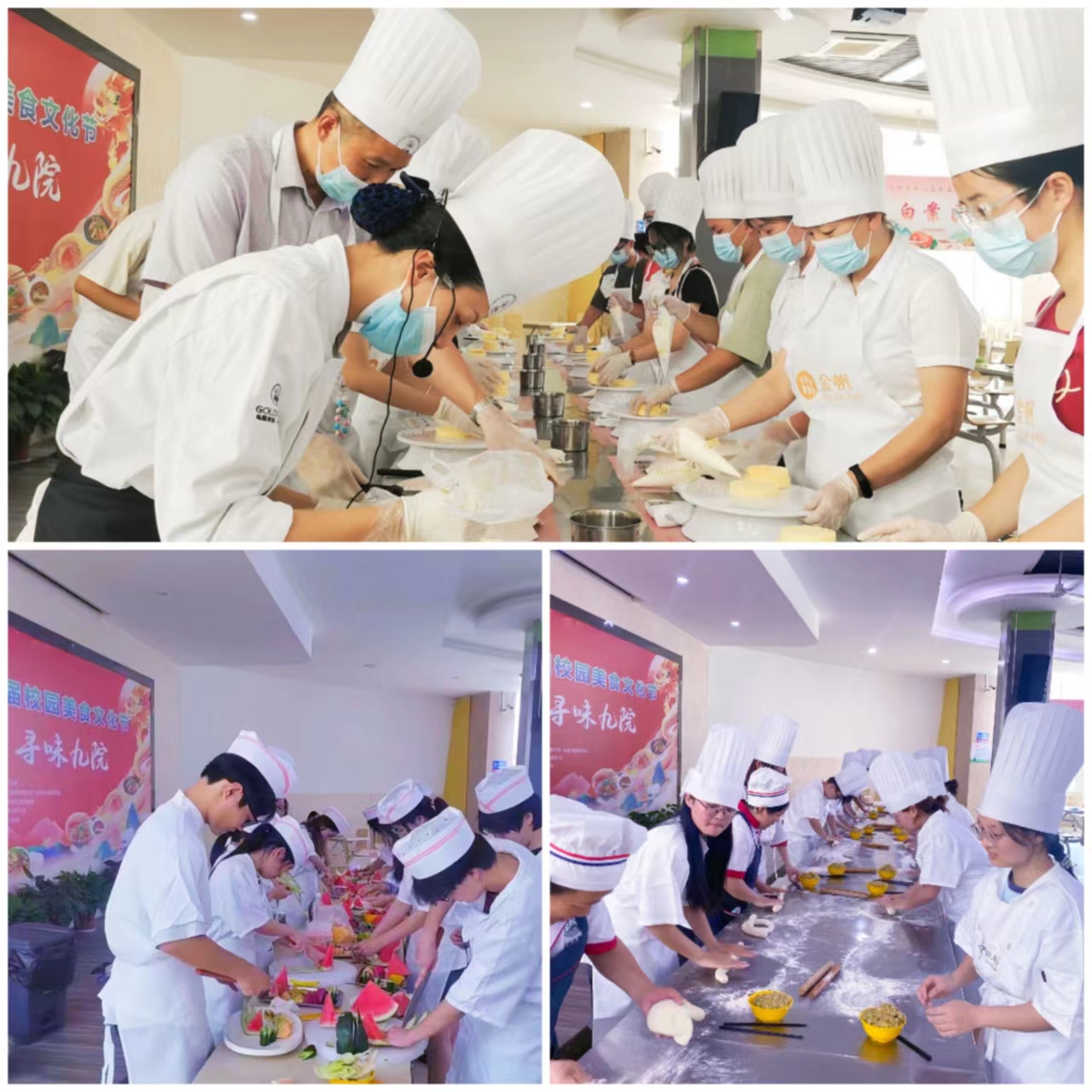 在今年的美食文化节活动中,还特别设置了学生DIY厨艺班,同学们可以学习糕点烘焙、面点制作和水果拼盘制作。