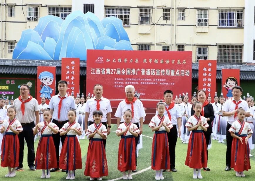 9月20日上午,江西省第27届推普周系列活动重点活动在贵溪市举行。由江西省语言文字工作委员会、省教育厅主办,鹰潭市教育局、贵溪市教体局、贵溪市第二小学承办,九江学院协办。省委教育工委委员、省教育厅副厅长汪立夏,我校党委委员、副校长李松志,省教育厅语材处处长、语委办主任张婵,教务处、鹰潭市教育局及贵溪市相关负责人等出席活动。