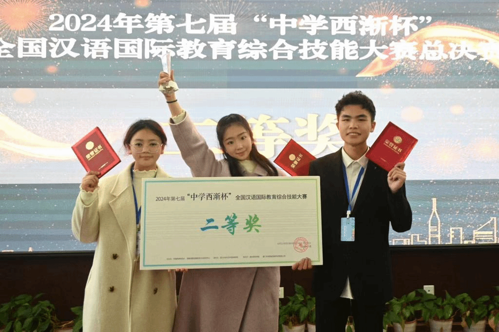 11月24日,第七届“中学西渐杯”全国汉语国际教育综合技能大赛总决赛在四川大学圆满落幕。我校文学院汉语国际教育专业的董竹悦、金迪儿、漆文康三位同学从223所高校的强劲对手中脱颖而出,以优异表现摘得全国二等奖,刷新了我校在该项赛事中的最好成绩。