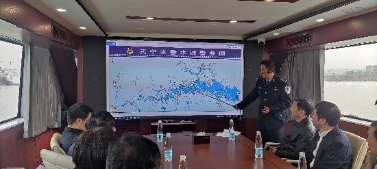 会后,鲁卫东一行驱车数里来到水警码头汇合省政府办公厅调研组一行,就该县公安局水上移动指挥作战平台的信息化建设、水域治理进行调研。