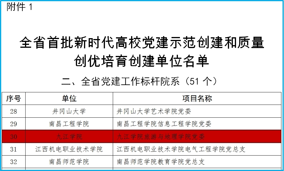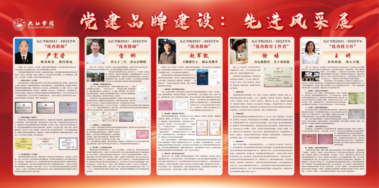 学院党委对标高校党建建设要求,全面推进党建工作系统化、项目化和特色化,成效明显。先后被江西省委教育工委授予“全省高校党建工作示范点”“全省高校示范性党员活动室”;连续13年荣获学校“先进基层党委”称号、2022年获批学校“党建工作标杆学院”、2023年获批江西省首批“全省党建工作标杆院系”,2024年荣获九江市“先进基层党组织”、九江市直机关单位“先进基层党组织”、九江学院“先进基层党组织”称号。