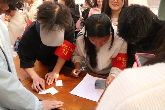 赛场上,化学化工学院的15个代表队的选手们精神抖擞,斗志昂扬。在方程式配平接力赛中,他们争分夺秒,默契配合,每一次成功的配平都赢得了观众的热烈掌声。实验技能抢答跳远环节,选手们思维敏捷,反应迅速,跳远时的飒爽英姿令人赞叹。元素拼接定向越野中,选手们穿梭于校园之间,智慧与勇气并存,最终成功完成任务,将现场气氛推向高潮。