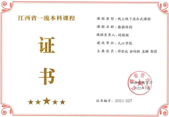 图3-3《数据结构》一流课程证书