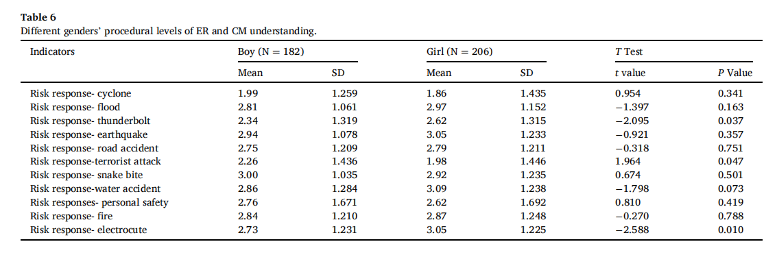 2.方法创新:基于Krathwohl知识分类体系,构建四维知识分析框架,突破传统性别差异研究的笼统表述,为减灾教育研究提供精细化分析工具;