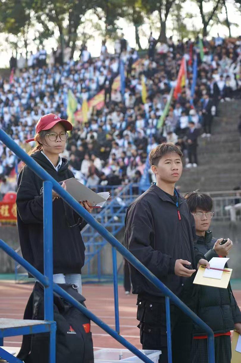 广播员肖甜忆兴奋地说:“在主席台上与全场互动,传递声音的力量,是难得的机会。”检录裁判长高彬溪老师表示:“我们会积极解决突发情况,确保每位运动员都能安心参赛。”