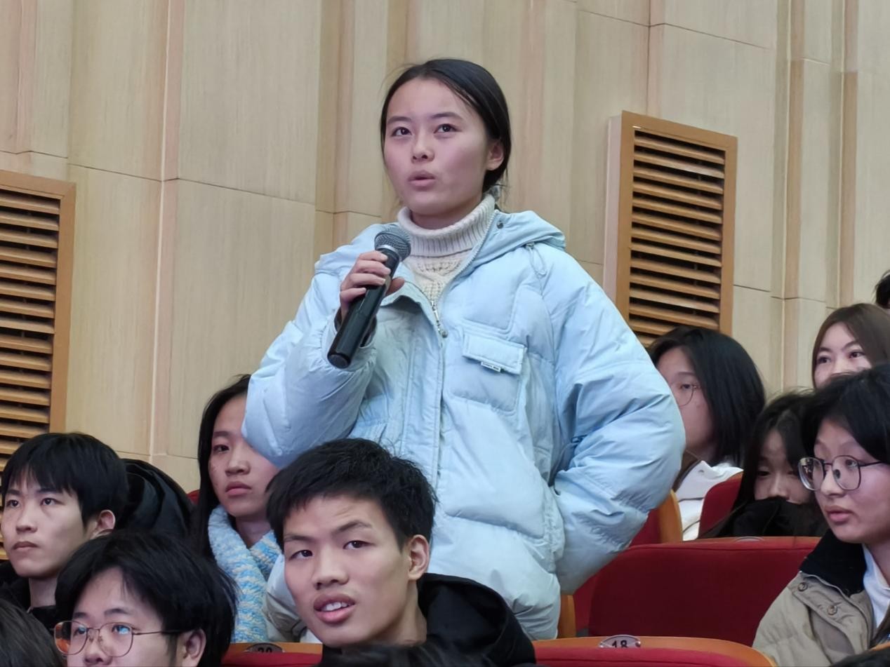 本次大赛自10月启动以来,各学院高度重视、广泛动员,累计吸引千余名学生参与。11月下旬,校级复赛通过多轮测试筛选出8支精英队伍晋级决赛。决赛设置“文韵初阶挑战”“文脉寻踪对决”“诗韵巅峰对擂”三大递进式环节,分别从汉语基础规范、传统文化内涵、诗词才情素养三个维度考查选手综合能力。其中,压轴环节“飞花令”氛围尤为热烈,选手们才思敏捷、出口成诗,围绕指定主题轮番应答,充分展现了扎实的文化功底与临场应变能力,赢得现场观众阵阵掌声。现场同步开展的互动游戏环节,同学们踊跃参与、积极竞答,进一步营造了“选手竞技展风采、观众同乐品书香”的良好氛围。