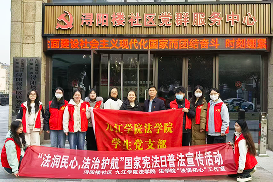 12月3日下午,法学院“法润初心”志愿者服务队师生党员走进浔阳楼社区,开展“法润民心,法治护航”主题普法宣传活动。