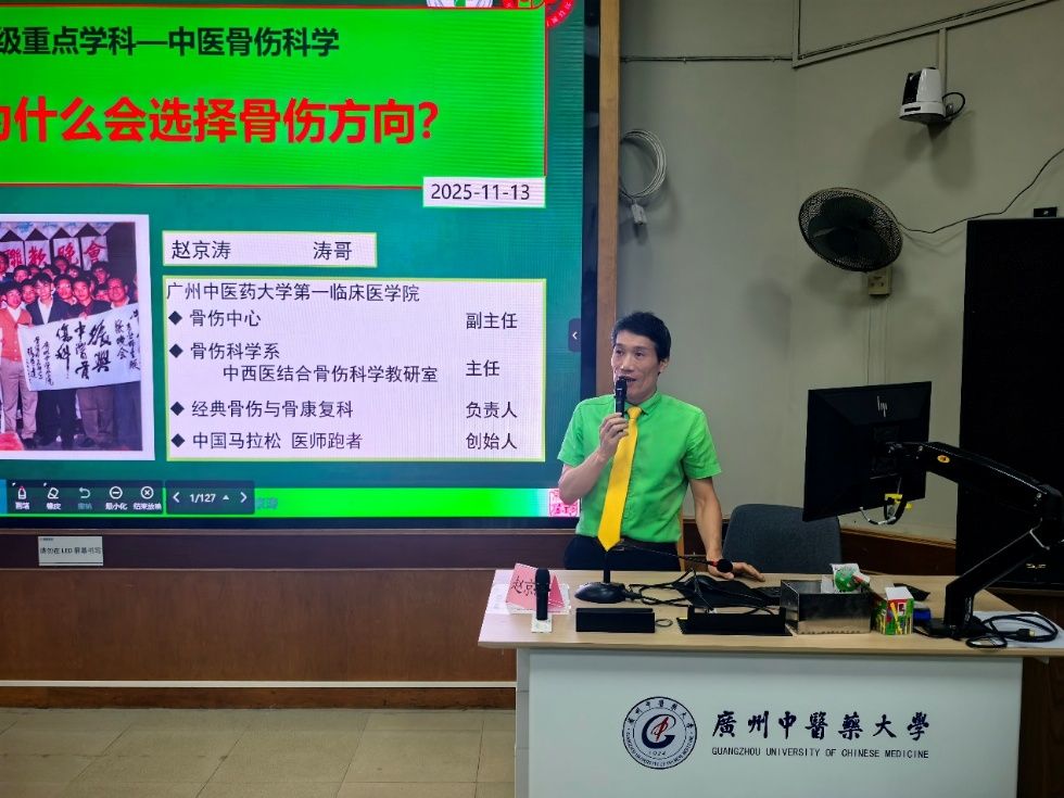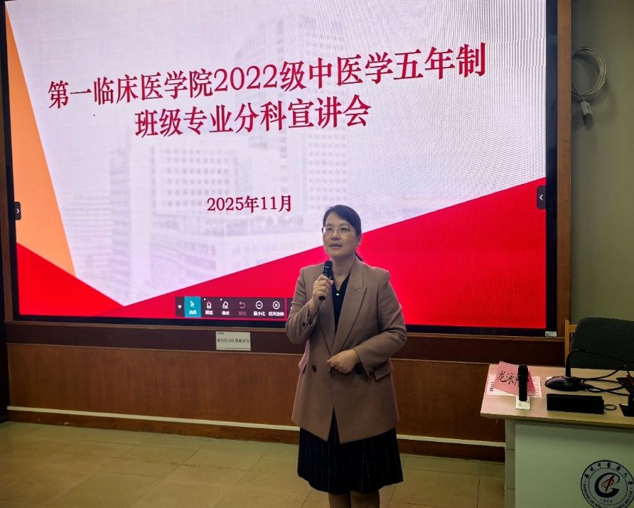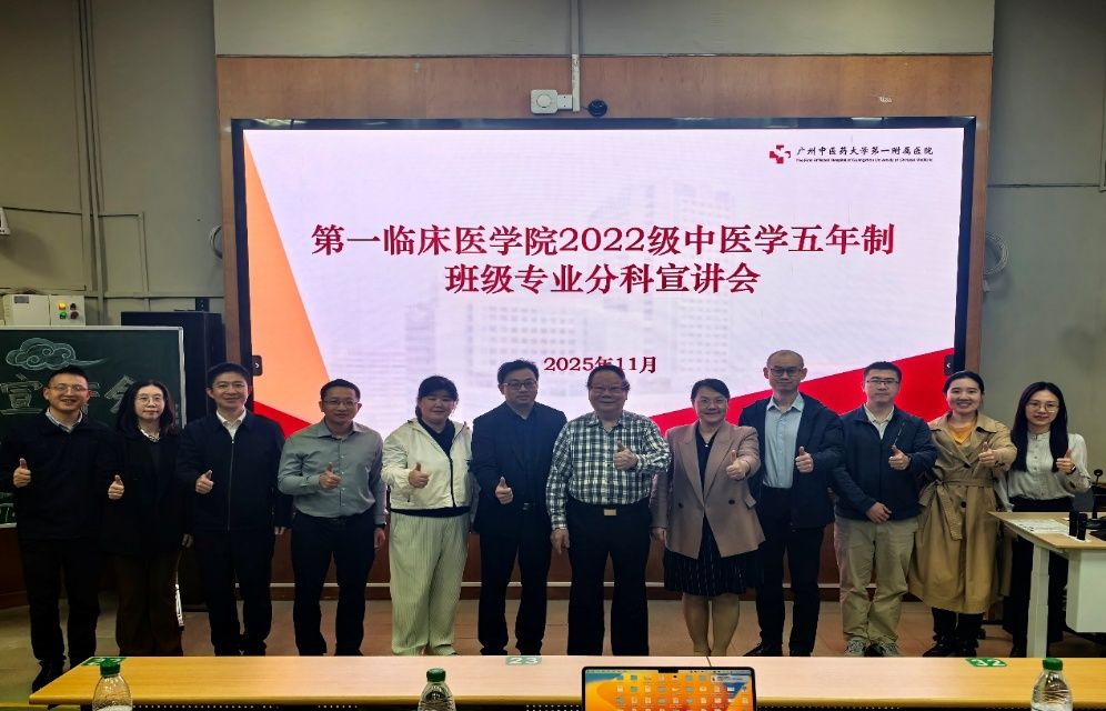 秋意渐浓,学途新启。2025年11月13日晚,第一临床医学院2022级中医学五年制专业分科宣讲会于三元里校区办公楼第一大课室隆重举行。本次会议特邀国医大师周岱翰教授权威坐镇,汇聚各学科方向专家:肿瘤学系曹洋教授、肖志伟副教授、陈尧老师、王文萍老师;妇儿学系郜洁教授、黄艳茜老师;中医经典临床学系刘树林教授;骨伤科学系赵京涛教授;教育教学部龙泳伶部长、周峰副部长、陈小波副主任、谢翠英老师等。众师者齐聚一堂,以深厚学识与临床经验为学子指点迷津,共同开启中医传承与创新的新篇章。