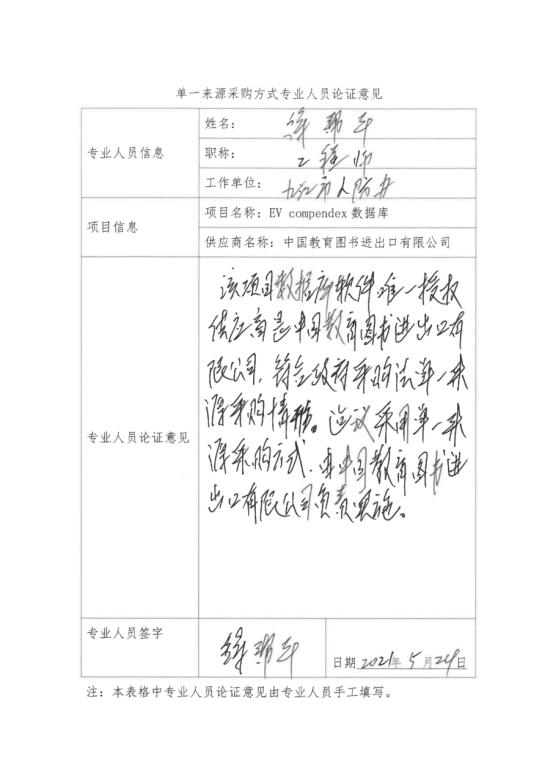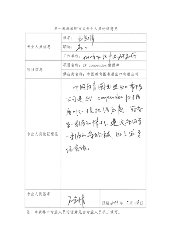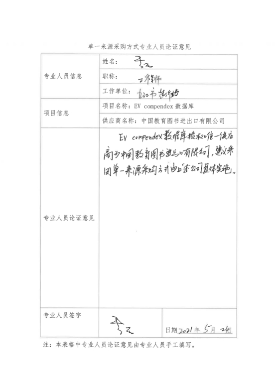 采用单一来源采购方式的原因及说明:EV compendex数据库授权唯一供应商为中国教育图书进出口有限公司,符合单一来源情形,建议采用单一来源采购方式,由中国教育图书进出口有限公司具体实施。